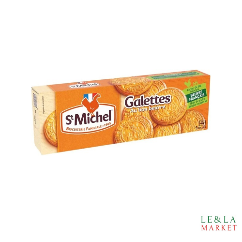 St Michel, biscuiterie familiale depuis 1905 vous propose son emblématique Galette St Michel au bon beurre. Redécouvrez jour après jour, les saveurs de nos iconiques Galettes au beurre, la recette qui dès 1905, a forgé notre histoire. Retrouvez à travers cette recette authentique, notre passion des biscuits à la française élaborés à partir d’ingrédients de qualité : du bon beurre, de la farine de blé cultivé en France selon de bonnes pratiques agricoles. Nous travaillons également nos recettes pour les rendre toujours plus naturelles : tous nos biscuits sont sans colorants, sans conservateurs, sans matière grasse hydrogénée, et nos recettes n’incluent pas d’huile de palme. Bien qu’autorisé, nous avons également supprimé le E450 de tous nos biscuits. Pour garantir encore plus longtemps leur croustillant et leur goût inimitable, les Galettes au beurre St Michel sont conditionnées en 4 sachets de 5 Galettes. Nos Galettes au beurre sont préparées, comme le reste de nos douceurs, par les pâtissiers de notre biscuiterie familiale située dans le département de la Loire Atlantique, en région Pays de la Loire.