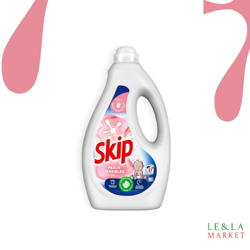 Skip Peaux Sensibles & Bébé est la lessive idéale pour les peaux sensibles. Elle est douce pour votre peau comme pour votre linge. Sa formule a été testée auprès de sujets volontaires à peau sensible, sous contrôle d'un dermatologue et selon un protocole strict. Aucune réaction indésirable n'a été observée. Idéale pour les lavages à basse température, la lessive liquide Skip Peaux Sensibles & Bébé se dissout instantanément et pénètre au cœur du linge. Sa formule exempte d'agents de blanchiment détache vos vêtements tout en respectant les fibres et les couleurs. Elle peut être utilisée pour la laine et la soie. La lessive Skip Peaux Sensibles & Bébé, une propreté éclatante pour votre linge, dans le respect des peaux sensibles. Cette lessive permet de faire 37 lavages. Skip, ce sont plus de 50 ans d'expertise et d'innovations dans le domaine des lessives, toujours guidées par une forte volonté d'améliorer le quotidien des familles. Skip, c'est également une philosophie de marque unique ! Chez Skip, nous sommes convaincus que nos enfants ont besoin d'expérimenter, de jouer dehors et de découvrir le monde qui les entoure en toute sérénité, afin de se préparer à demain ! Ainsi, chaque tache peut être synonyme d'un moment de joie et de partage, d'un challenge réussi ou d'une nouvelle aventure. C'est pourquoi nos lessives sont efficaces sur les taches, même tenaces : pour laisser aux enfants la liberté de se salir. « Libre de se salir », c'est la garantie d'une marque experte en la matière, grâce à laquelle vous n'aurez plus à vous soucier des taches.