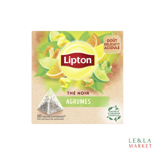 Thé Lipton aux agrumes. De belles feuilles de thé noir rencontrent un mélange exquis de citron, citron vert, pamplemousse et orange dans des sachets pyramidaux. Un goût acidulé intensément stimulant pour un plaisir incomparable.